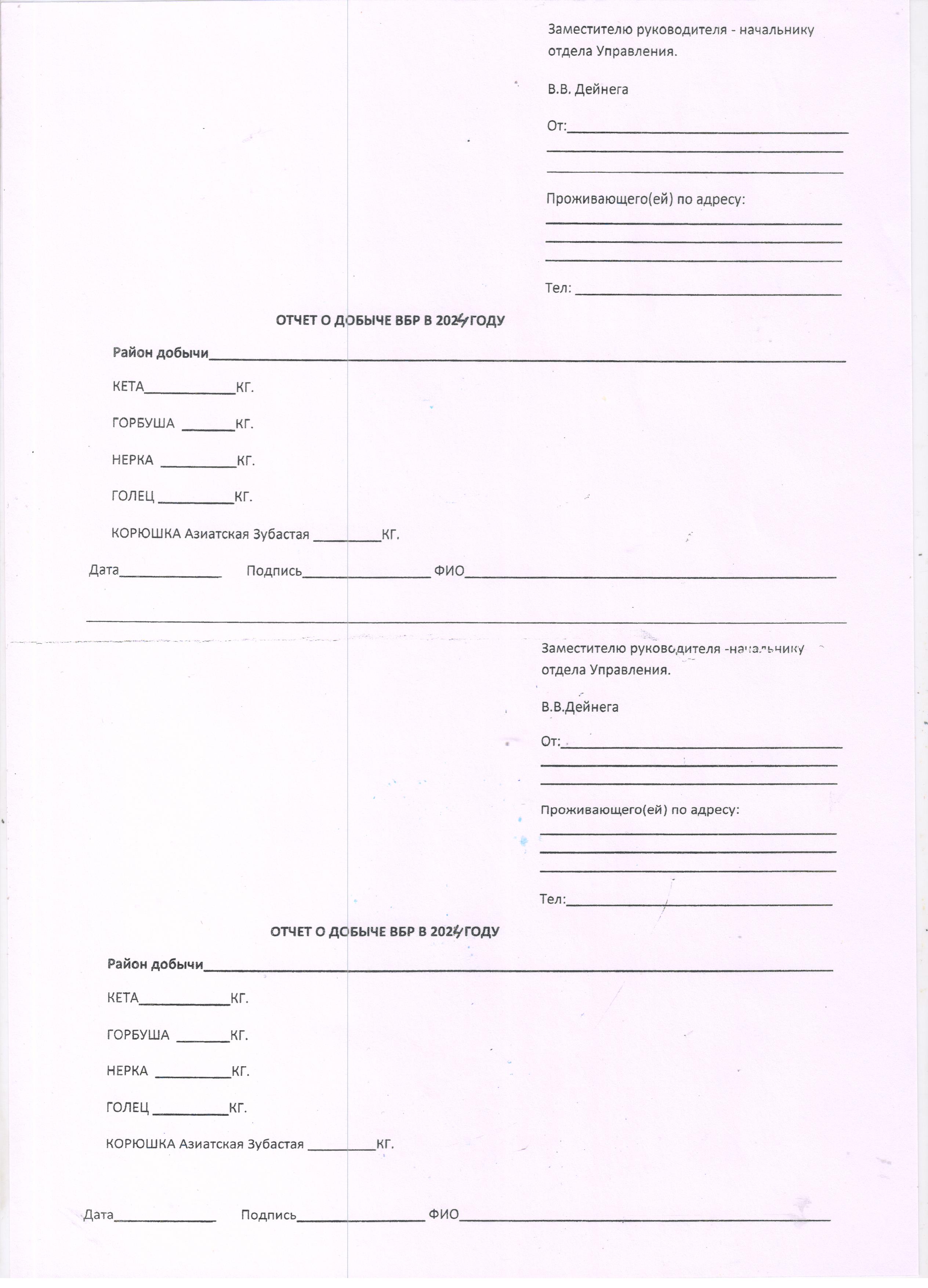Примерная форма заполнения Отчета о добыче ВБР в 2024 году