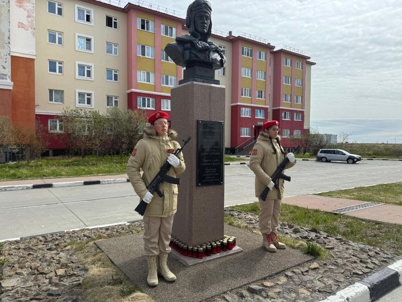 Жители посёлка, активисты, учащиеся Центра образования и юнармейцы собрались, чтобы отдать дань уважения легендарному лётчику. У памятника был выставлен почётный караул, а участники акции почтили его память минутой молчания и возложили зажжённые лампады.