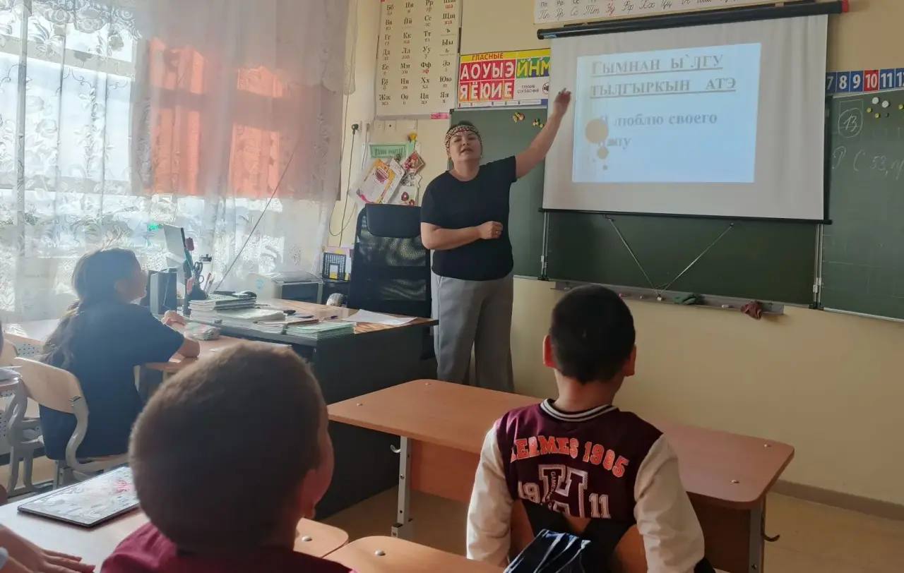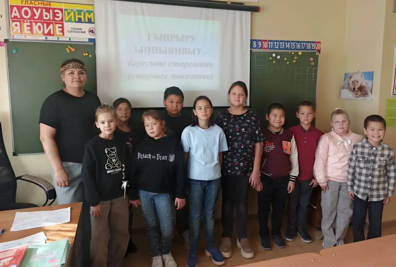 Однако главной и самой сложной задачей для третьеклассников стало освоение целого предложения на чукотском языке: «Гымнаг ы'льгу тыльгыргкын атэ» — «Я люблю своего папу». Несмотря на некоторые трудности произношения, дети проявили живой интерес и высокую вовлеченность и с радостью включились в процесс.