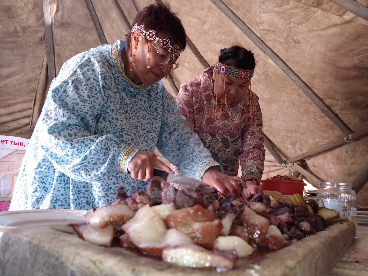 На праздниках царила атмосфера гостеприимства – гостей угощали блюдами северной кухни: ухой из кетовых голов, олениной, приготовленной на костре, и ароматными лепешками с морошкой.