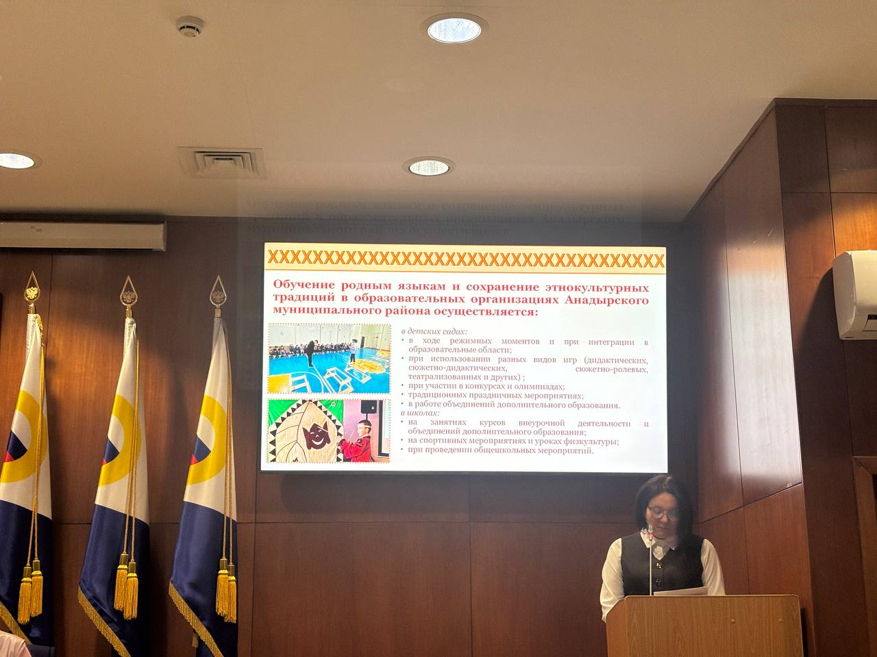 От Анадырского муниципального района с докладом «На пути к истокам: проблемы и пути решения по созданию тундровых образовательных маршрутов» выступила исполняющий обязанности начальника Управления социальной политики Администрации Анадырского муниципального района Мария Федорова. Она обозначила ключевую проблему: жизнь в интернатах неизбежно ведет к разрыву с родным языком, культурой и навыками предков.