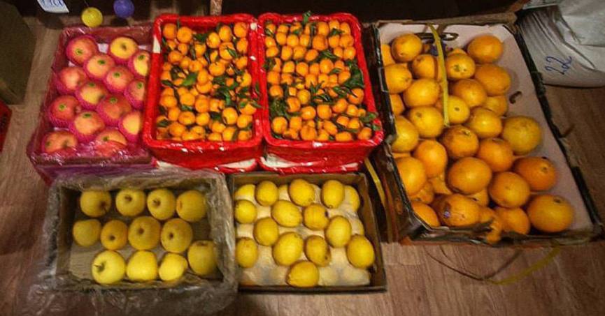 В перечне доставленных товаров: свежие овощи (картофель, лук, капуста, морковь, свёкла), фрукты (яблоки, мандарины, лимоны), а также колбасные изделия, сыры и социально значимые товары.