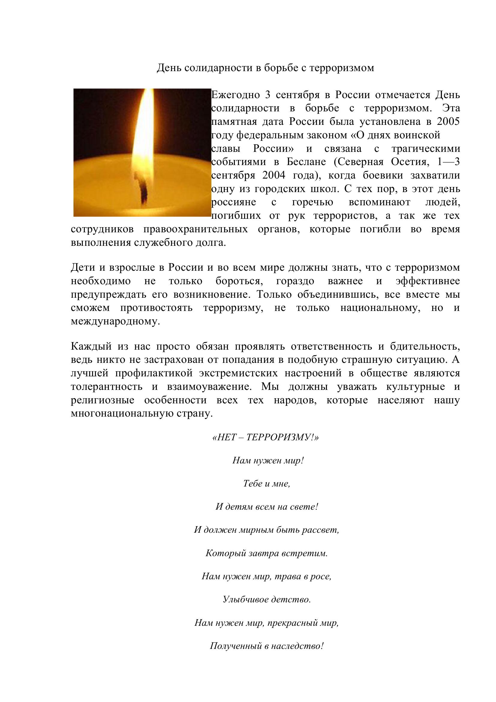День солидарности в борьбе с терроризмом